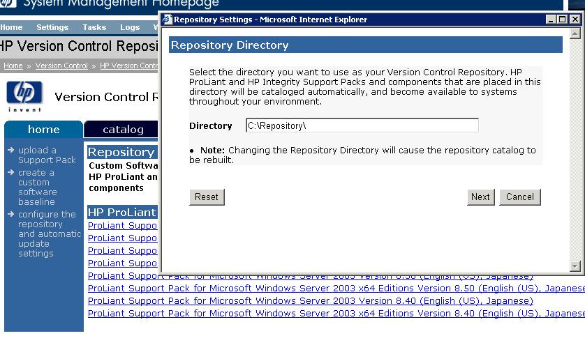 After installation of software , you will found the option of repository manager on HP System management Home page