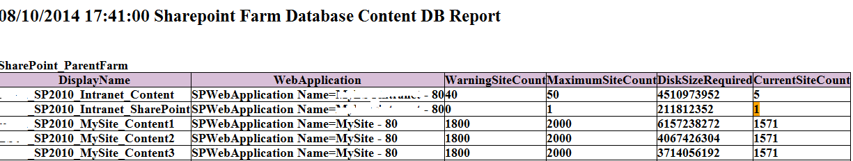 Note:- Script will also change the color to orange & red ( db size more than 100 gb –> Red & 80 GB –>yellow) — you can change the value inside accordingly. cell will also turn to orange if site count is on warning level.