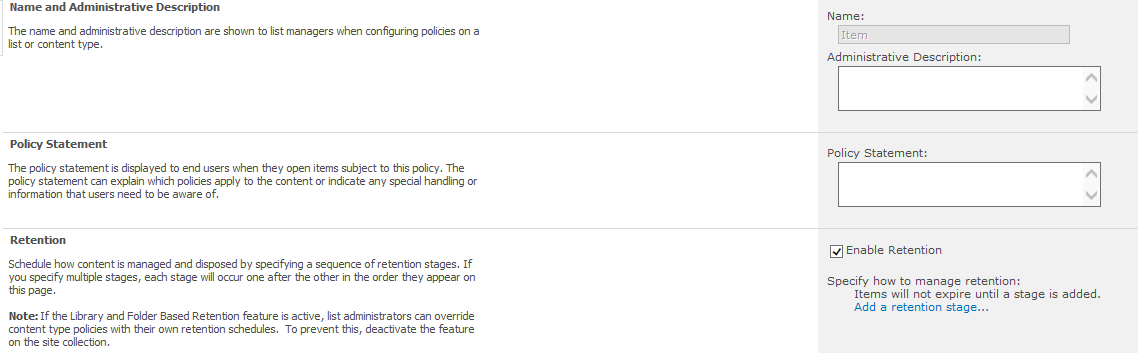- Click Information management policy settings