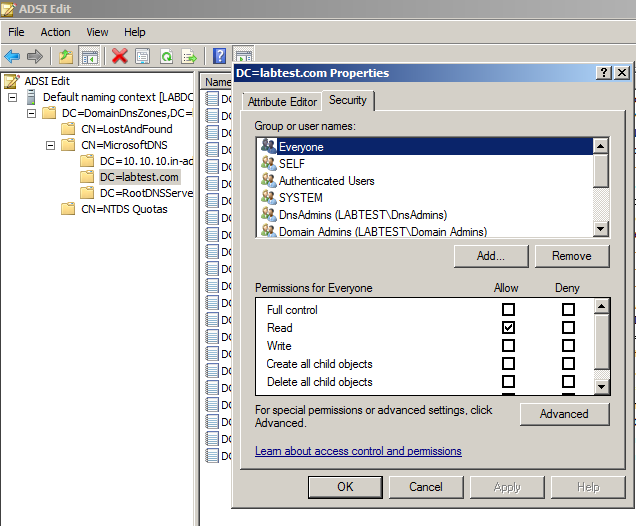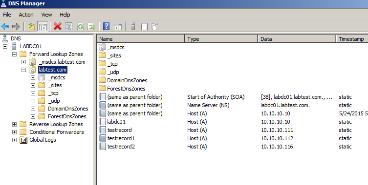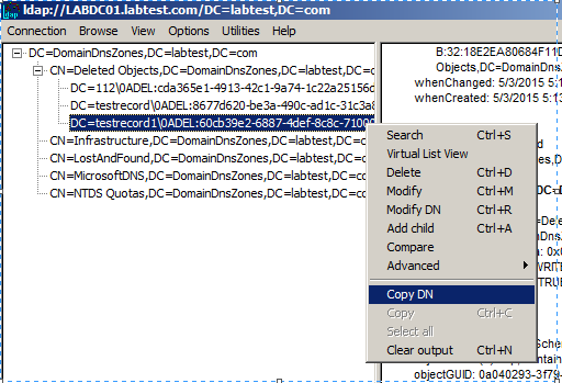 Object Name: DC=testrecord2,DC=labtest.com,CN=MicrosoftDNS,DC=DomainDnsZones,DC=labtest,DC=com