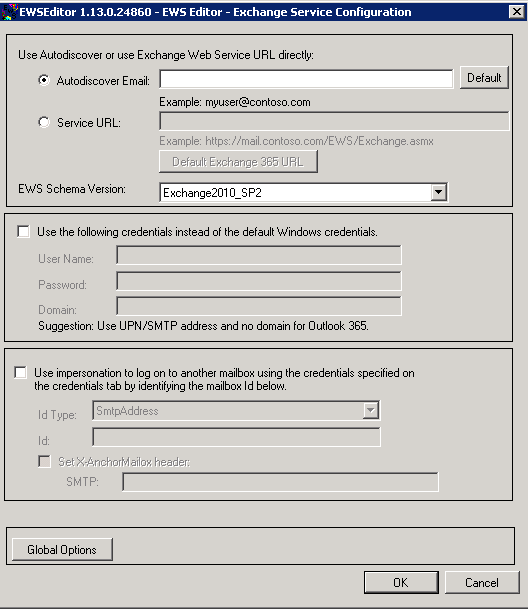- Select either the option to Use AutoDiscover or Use a specific EWS Url instead of using AutoDiscover to get the URL.