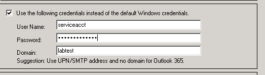 - Click on the Use the following credentials instead of the default Windows credentials.