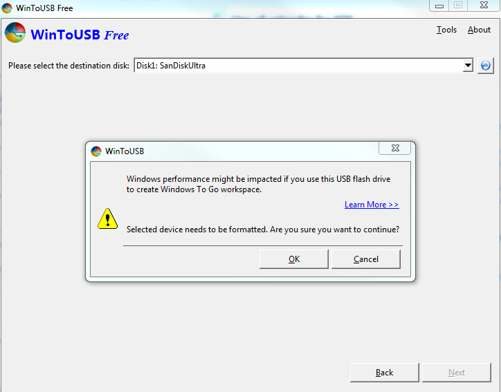 3. Click Ok to format the drive (if there is any data on the drive, it will be lost)