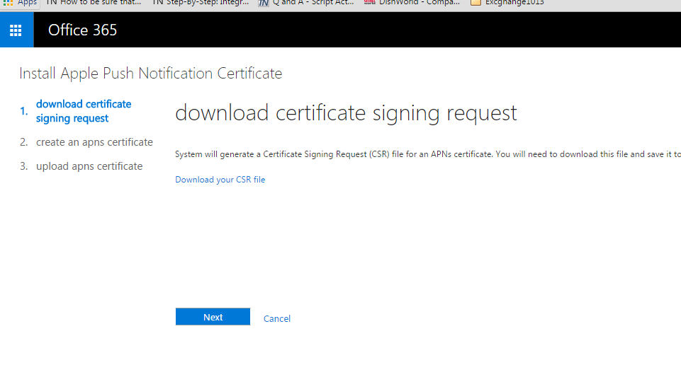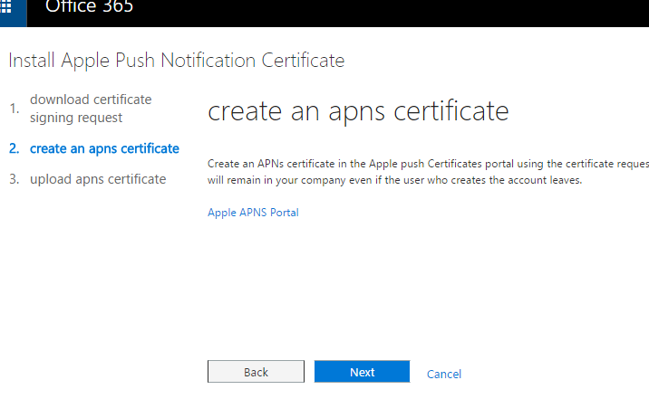 9. Now move back to Office 365 Portal & upload the certificate that you just created.