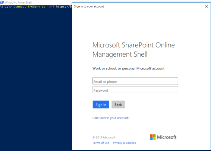 ones above is done connect to the online Shell –>Connect-SPOService -Url AdminURL