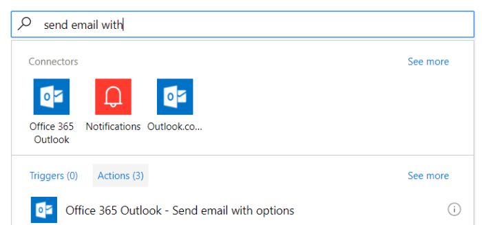 Select the Action and search for  Send email with as shown below: