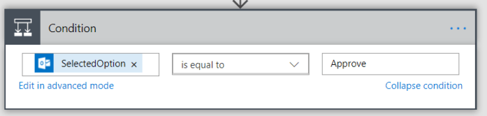 Next action is –> ADD a Condition and SelectedOption  should be set to Approve (exactly same that you added in Choice under user options)