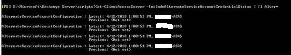 Get-ClientAccessServer -IncludeAlternateServiceAccountCredentialStatus | fl Alter*