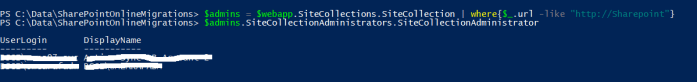 $admins.SiteCollectionAdministrators.SiteCollectionAdministrator