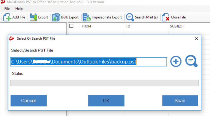Click on Scan and than Ok to load the PST file (see the below screenshot reference)