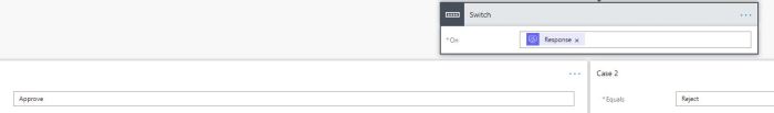 Next action is to use Switch Case and capture the response of Approve and Reject action.