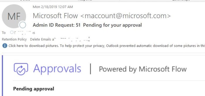 You can use this technique to add Approval flow with comments in your Flow with one caveat that email will always arrive from Maccount@microsoft.com but there are other benefits like you can approve the request from the Flow Portal and also from Flow mobile App.