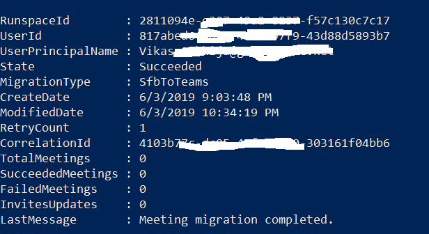 Get-CsMeetingMigrationStatus -Identity VSukhija@labtest.com