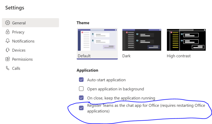 Note: on the client side check mark –> Register Teams as chat app for Office