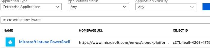 1. Thank you very much for posting this. This is the clearest explanation that I have found on how to add the Microsoft Intune PowerShell app to Enterprise Applications if it is not already present.