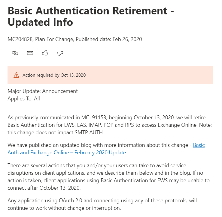 Capture Published March 12, 2020 at 739 × 724 in End of Exchange Online Classic Authentication Next →