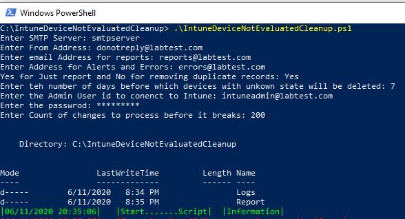 Send-MailMessage -SmtpServer $smtpserver -From $from -To $email1 -bcc $erroremail -Subject “Reports – IntuneDeviceNotEvaluatedCleanup” -Body “Reports – IntuneDeviceNotEvaluatedCleanup” -Attachments $report