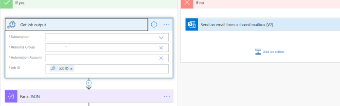 This step will create a JOB and execute the Azure automation run book, Wait for job should be selected as yes so that you can get the output back to your flow in real time.
