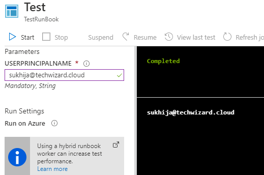 - Create a Run book on your azure automation account