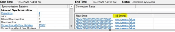 After synchronization finished thru Azure AD Connect around 80 errors for groups have been detected.
