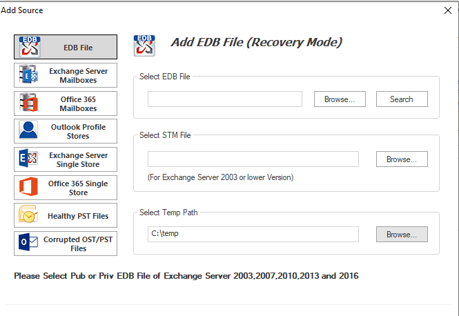You can add the Sources right from EDB file, office 365 to ost and pst files.