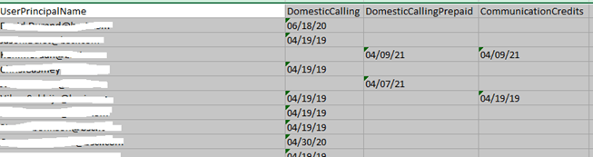 Add the relevant names for reporting $coll = “” | Select UserPrincipalName,DomesticCalling, DomesticCallingPrepaid, CommunicationCredits # for reporting add the names