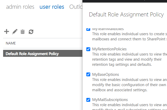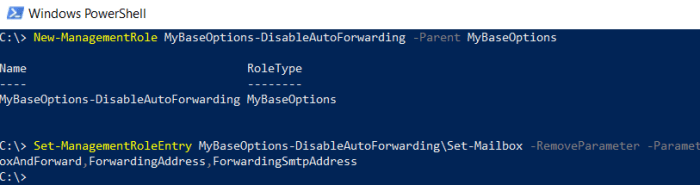 - New-ManagementRole MyBaseOptions-DisableAutoForwarding -Parent MyBaseOptions