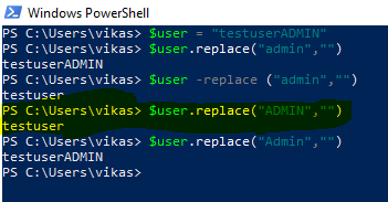 Replacing ADMIN with .replace does not do anything as it is case sensitive but performing same operation using -replace replaces the ADMIN as that is case insensitive.