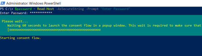 $password = Read-Host -AsSecureString -Prompt “Enter Password”