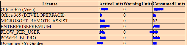 I hope this code will assist you in getting the license details inside your tenants or if you are using my old script this script will replace it.